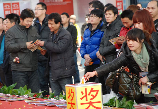 活動現(xiàn)場,保賜利不僅通過專場秀展示著品牌實力,也在舞臺側(cè)面通過保賜利專業(yè)展柜陳列的樣品和現(xiàn)場觀眾進行面對面的交流,同時,在為每位觀眾派發(fā)保賜利“龍年精品巨獻特刊”時,也為每位觀眾派贈了一張本次活動的抽獎券。在保賜利專場秀抽獎活動第一天第一場,便有著人氣爆棚之勢,現(xiàn)場參與抽獎觀眾達到800多人次,并由保賜利市場總監(jiān)劉利明先生為參與者抽出了10名中獎?wù),并現(xiàn)場為他們派發(fā)了價值588元的保賜利“車窗*車體二合一撥水鍍膜劑套裝”。