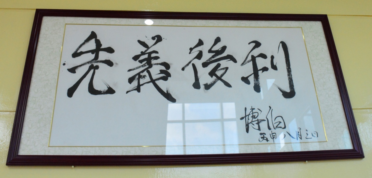 (“先義后利”四個(gè)字牌匾掛在行政樓顯眼處)