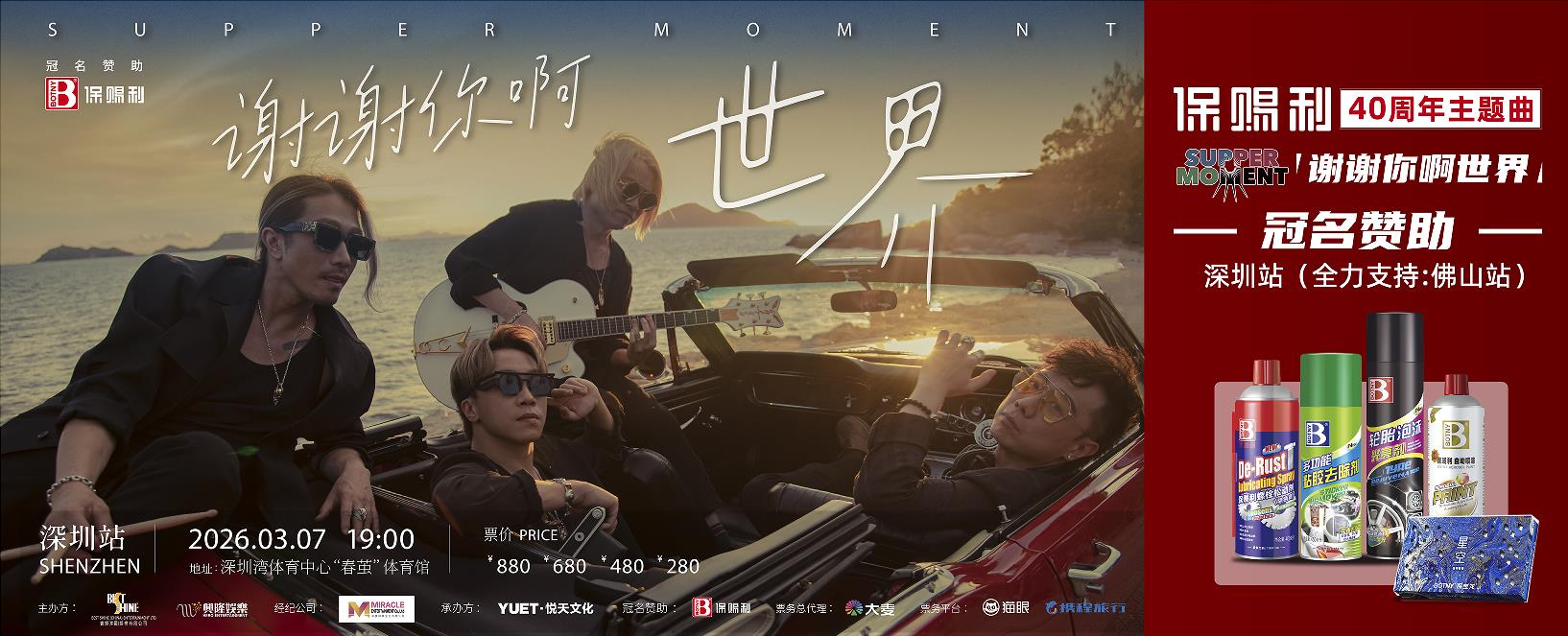 保賜利正式宣布冠名贊助Supper Moment「謝謝你啊世界」3月7日深圳站演唱會(huì),并全力支持1月31日佛山站,攜手樂隊(duì)共同開啟這段充滿力量和希望的音樂旅程。
